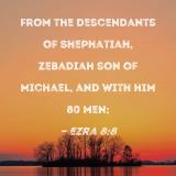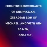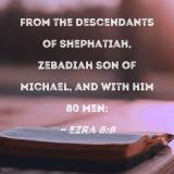 from the descendants of Shephatiah, Zebadiah son of Michael, and with him 80 men;