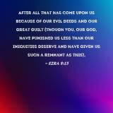 After all that has come upon us because of our evil deeds and our great guilt (though You, our God, have punished us less than our iniquities deserve and have given us such a remnant as this),