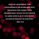 shall we again break Your commandments and intermarry with the peoples who commit these abominations? Would You not become so angry with us as to wipe us out, leaving no remnant or survivor?