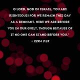 O LORD, God of Israel, You are righteous! For we remain this day as a remnant. Here we are before You in our guilt, though because of it no one can stand before You."