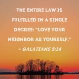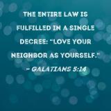 The entire law is fulfilled in a single decree: "Love your neighbor as yourself."