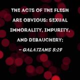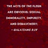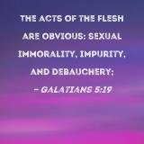 The acts of the flesh are obvious: sexual immorality, impurity, and debauchery;