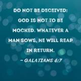 Do not be deceived: God is not to be mocked. Whatever a man sows, he will reap in return.