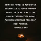 From the Negev he journeyed from place to place toward Bethel, until he came to the place between Bethel and Ai where his tent had formerly been pitched,