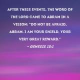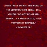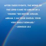 After these events, the word of the LORD came to Abram in a vision: "Do not be afraid, Abram. I am your shield, your very great reward."