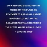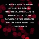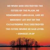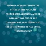 So when God destroyed the cities of the plain, He remembered Abraham, and He brought Lot out of the catastrophe that destroyed the cities where he had lived.