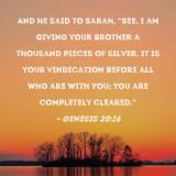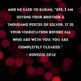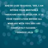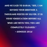 And he said to Sarah, "See, I am giving your brother a thousand pieces of silver. It is your vindication before all who are with you; you are completely cleared."
