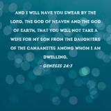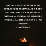 and I will have you swear by the LORD, the God of heaven and the God of earth, that you will not take a wife for my son from the daughters of the Canaanites among whom I am dwelling,