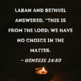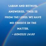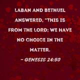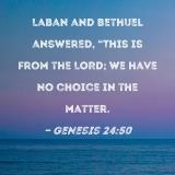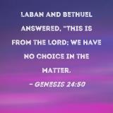 Laban and Bethuel answered, "This is from the LORD; we have no choice in the matter.