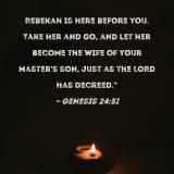Rebekah is here before you. Take her and go, and let her become the wife of your master's son, just as the LORD has decreed."