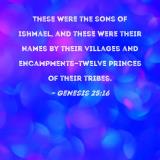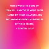 These were the sons of Ishmael, and these were their names by their villages and encampments--twelve princes of their tribes.