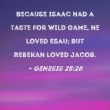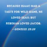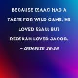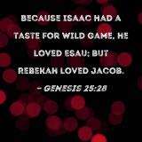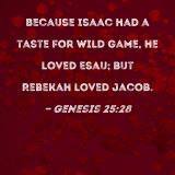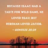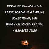 Because Isaac had a taste for wild game, he loved Esau; but Rebekah loved Jacob.