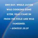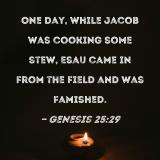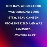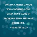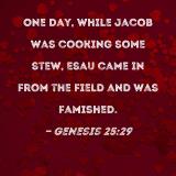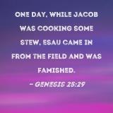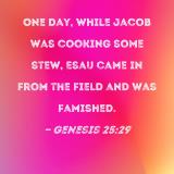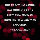 One day, while Jacob was cooking some stew, Esau came in from the field and was famished.
