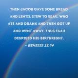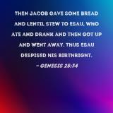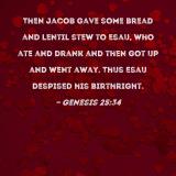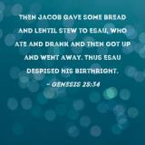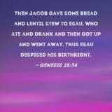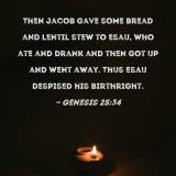 Then Jacob gave some bread and lentil stew to Esau, who ate and drank and then got up and went away. Thus Esau despised his birthright.
