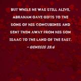 But while he was still alive, Abraham gave gifts to the sons of his concubines and sent them away from his son Isaac to the land of the east.