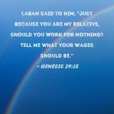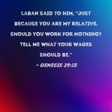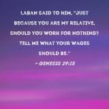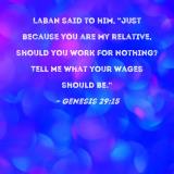 Laban said to him, "Just because you are my relative, should you work for nothing? Tell me what your wages should be."
