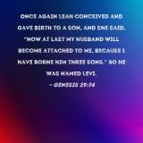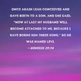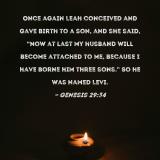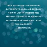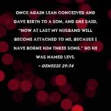 Once again Leah conceived and gave birth to a son, and she said, "Now at last my husband will become attached to me, because I have borne him three sons." So he was named Levi.