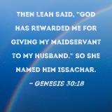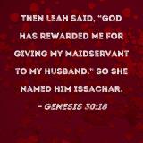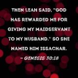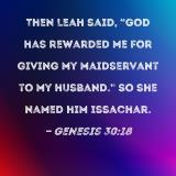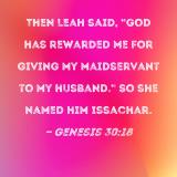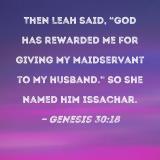Then Leah said, "God has rewarded me for giving my maidservant to my husband." So she named him Issachar.