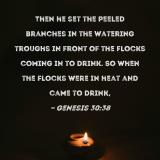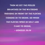 Then he set the peeled branches in the watering troughs in front of the flocks coming in to drink. So when the flocks were in heat and came to drink,