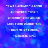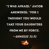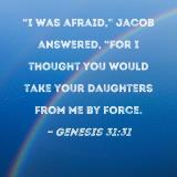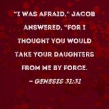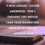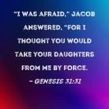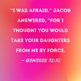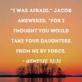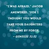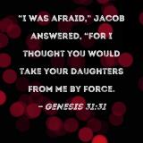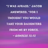 "I was afraid," Jacob answered, "for I thought you would take your daughters from me by force.