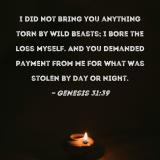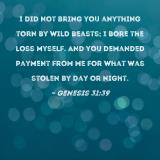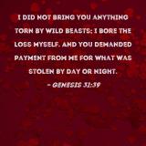I did not bring you anything torn by wild beasts; I bore the loss myself. And you demanded payment from me for what was stolen by day or night.