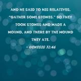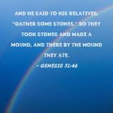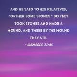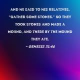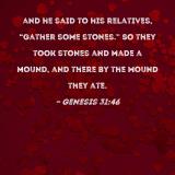 and he said to his relatives, "Gather some stones." So they took stones and made a mound, and there by the mound they ate.