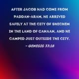 After Jacob had come from Paddan-aram, he arrived safely at the city of Shechem in the land of Canaan, and he camped just outside the city.