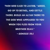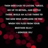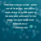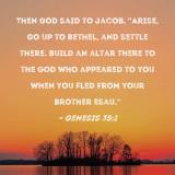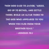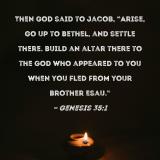 Then God said to Jacob, "Arise, go up to Bethel, and settle there. Build an altar there to the God who appeared to you when you fled from your brother Esau."
