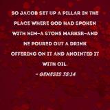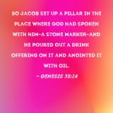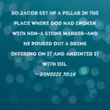 So Jacob set up a pillar in the place where God had spoken with him--a stone marker--and he poured out a drink offering on it and anointed it with oil.