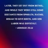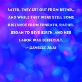 Later, they set out from Bethel, and while they were still some distance from Ephrath, Rachel began to give birth, and her labor was difficult.