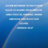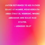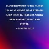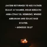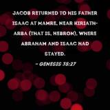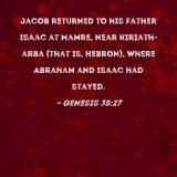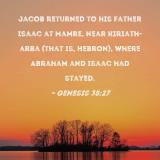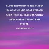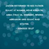 Jacob returned to his father Isaac at Mamre, near Kiriath-arba (that is, Hebron), where Abraham and Isaac had stayed.