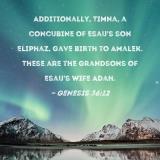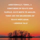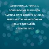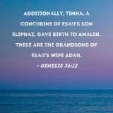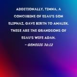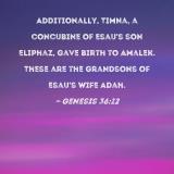 Additionally, Timna, a concubine of Esau's son Eliphaz, gave birth to Amalek. These are the grandsons of Esau's wife Adah.