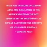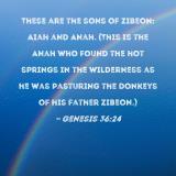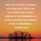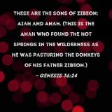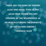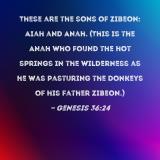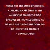 These are the sons of Zibeon: Aiah and Anah. (This is the Anah who found the hot springs in the wilderness as he was pasturing the donkeys of his father Zibeon.)