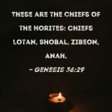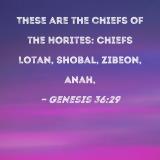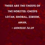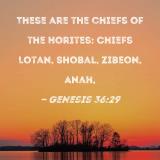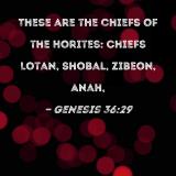 These are the chiefs of the Horites: Chiefs Lotan, Shobal, Zibeon, Anah,