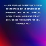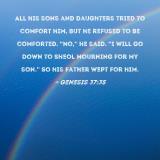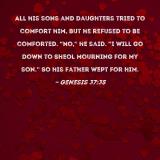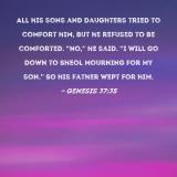 All his sons and daughters tried to comfort him, but he refused to be comforted. "No," he said. "I will go down to Sheol mourning for my son." So his father wept for him.