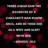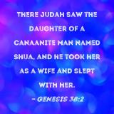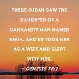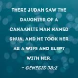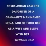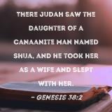There Judah saw the daughter of a Canaanite man named Shua, and he took her as a wife and slept with her.