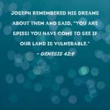 Joseph remembered his dreams about them and said, "You are spies! You have come to see if our land is vulnerable."