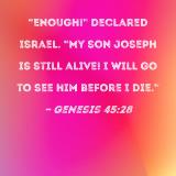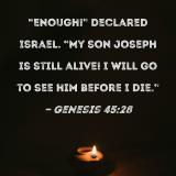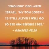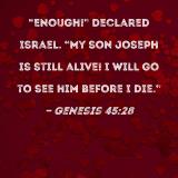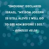 "Enough!" declared Israel. "My son Joseph is still alive! I will go to see him before I die."