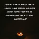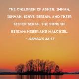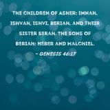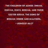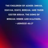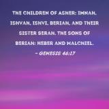 The children of Asher: Imnah, Ishvah, Ishvi, Beriah, and their sister Serah. The sons of Beriah: Heber and Malchiel.