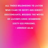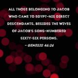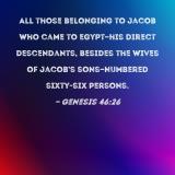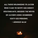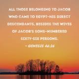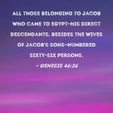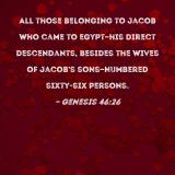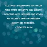 All those belonging to Jacob who came to Egypt--his direct descendants, besides the wives of Jacob's sons--numbered sixty-six persons.