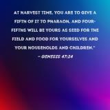 At harvest time, you are to give a fifth of it to Pharaoh, and four-fifths will be yours as seed for the field and food for yourselves and your households and children."