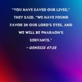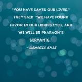 "You have saved our lives," they said. "We have found favor in our lord's eyes, and we will be Pharaoh's servants."