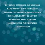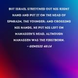 But Israel stretched out his right hand and put it on the head of Ephraim, the younger; and crossing his hands, he put his left on Manasseh's head, although Manasseh was the firstborn.