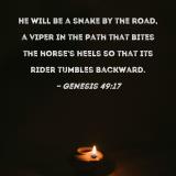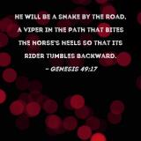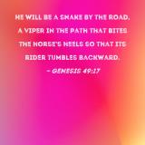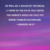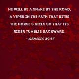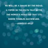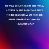 He will be a snake by the road, a viper in the path that bites the horse's heels so that its rider tumbles backward.