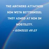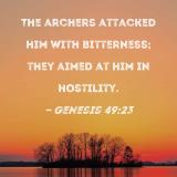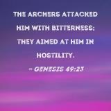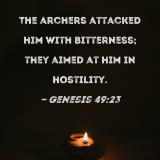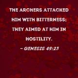 The archers attacked him with bitterness; they aimed at him in hostility.