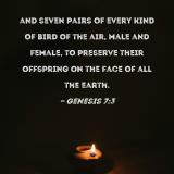 and seven pairs of every kind of bird of the air, male and female, to preserve their offspring on the face of all the earth.