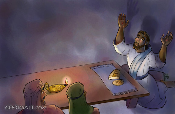 Jesus, house, cartoon, emmaus, resurrection, easter, disciples, break bread