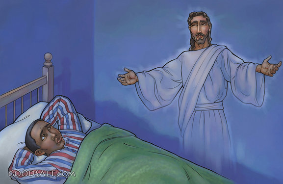 Jesus, prayer, present, night, bed, cartoon, sleep