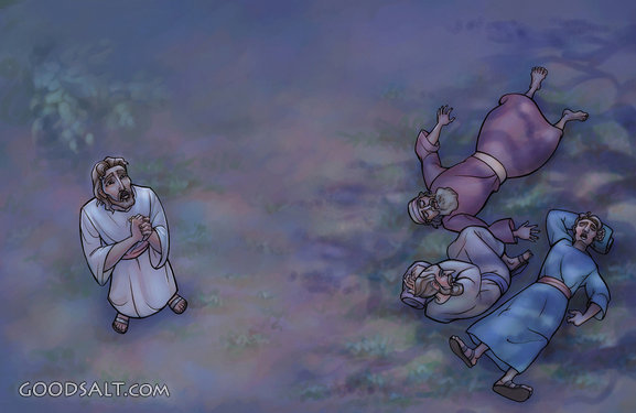 Jesus, prayer, john, peter, gethsemane, night, garden, cartoon, sleep, james, disciples