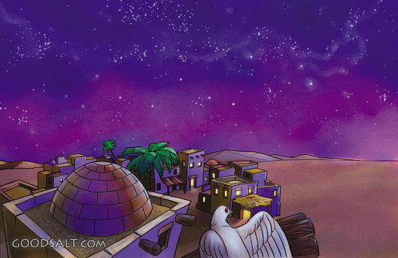city, Jesus, birth, night, cartoon, bethlehem, christmas, stable